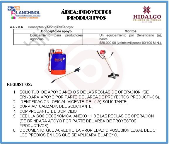 Tlanchinol, Hgo.- El gobierno municipal que preside el ciudadano Marcos Bautista Medina, hace extensiva la invitación a participar en las convocatorias emitidas por la Secretaría de Desarrollo Agropecuario, las cuales son publicadas con base en las reglas de operación 2023, a través del área de Proyectos productivos.