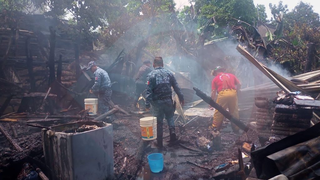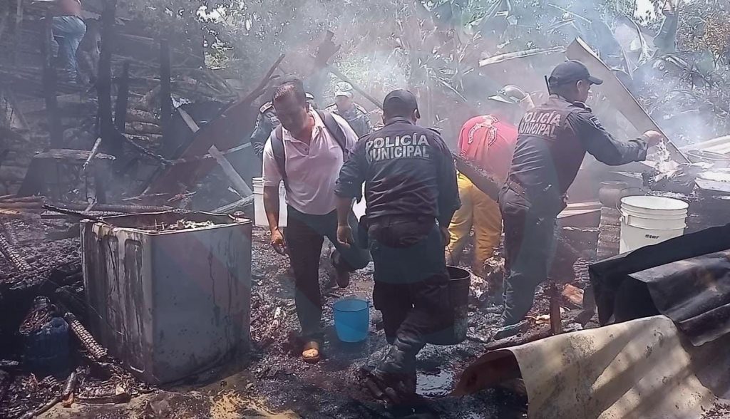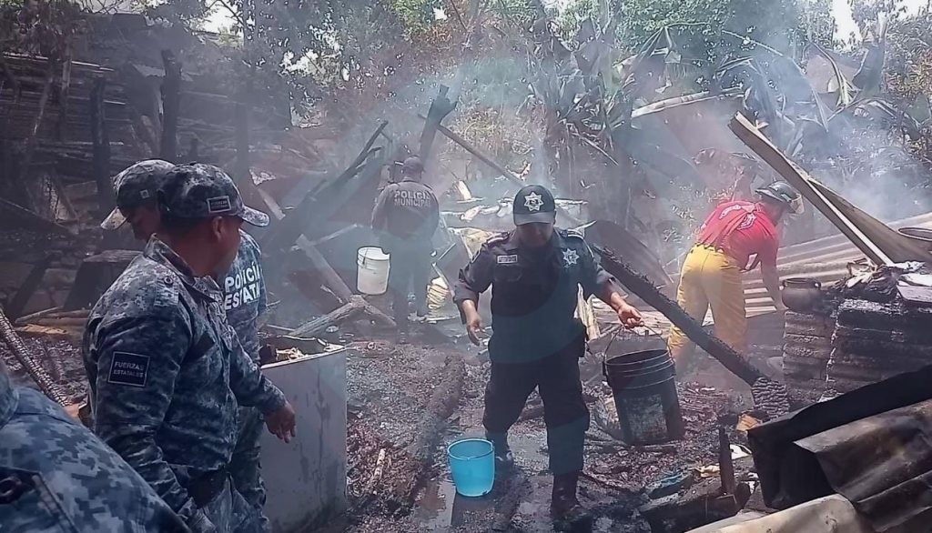 Al sitio acudieron agentes de Seguridad Pública Municipal, Policías Estatales y elementos del Heroico Cuerpo de Bomberos, quienes apagaron el fuego con el apoyo del camión bomba y con cubetas con agua, pero lamentablemente las enormes llamas arrasaron con todas las cosas que había en la cocina y una habitación que estaba construida de madera y láminas.