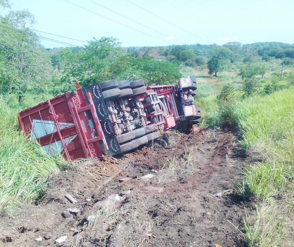 Fuentes policíacas informaron que el accidente ocurrió a la altura del Rancho Monte Líbano, perteneciente a este municipio y en el sitio un tractocamión de la marca Kenworth de doble remolque, color rojo, con matrícula de circulación 98-AE-2E del Servicio Público Federal, que era conducido por Félix Enrique N., sufrió una estrepitosa volcadura.
