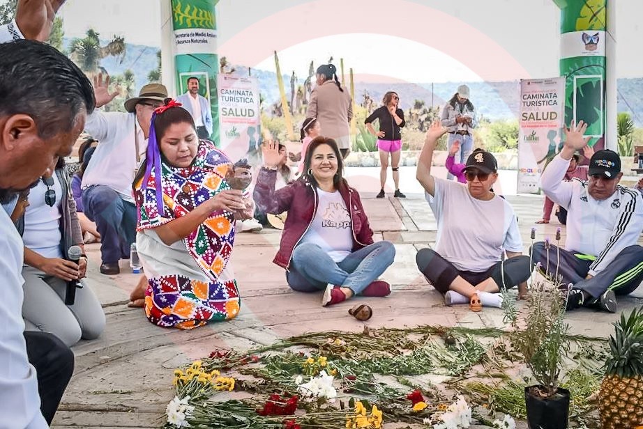 Pachuca, Hgo.- Este lunes la Secretaría de Turismo en coordinación con la Secretaria de Medio Ambiente y Recursos Naturales del estado, organizaron la “Caminata turística por la salud”, en el Parque Ecológico Cubitos, como una forma de fomentar la activación física a través del senderismo; ahí, sus titulares Elizabeth Quintanar Gómez y Mónica Patricia Mixtega Trejo, respectivamente participaron en un ritual ancestral denominado “Ofrenda a la Tierra”, cuyo principal objetivo fue invitar a toda la población a aprovechar los espacios naturales, así como la medicina tradicional, como una alternativa de salud física y mental, todo ello a través del turismo.