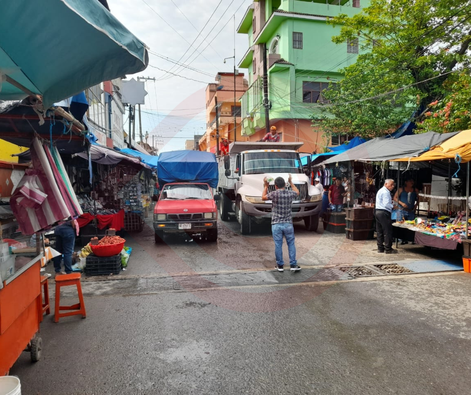 Huejutla, Hgo.- Vendedores semifijos, ubicados en el tramo de la avenida México que comprende las calles Constituyentes y Nuevo León, de la colonia Santa Irene, manifestaron que en la parte frontal de un comercio establecido, se estacionan unidades de carga que a diario causan caos vial.