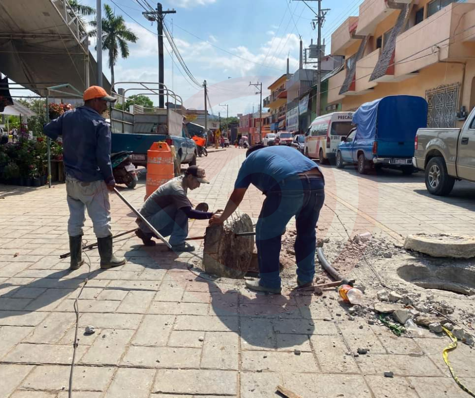 Ante esta situación, personal de Servicios Municipales a través del área de Agua Potable y Alcantarillado destapó la línea principal de conducción de drenaje de la avenida Hidalgo de la zona centro, debido a que la tubería se encontraba tapada por un exceso de basura, afectando así a los vecinos de dicho sector.