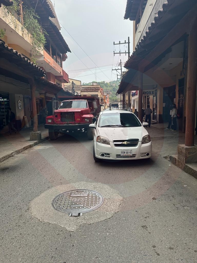 Indicó que durante la tarde del jueves sobre la calle Hidalgo en la zona Centro de Huejutla estaban tres coches mal estacionados y pasaba en esos momentos un camión de volteo “no se quitaron los coches y el conductor del camión de volteo tuvo que hacer maniobras para poder pasar, gracias a Dios no estaba muy alto, sino sí que se lleva todo el tejado”.