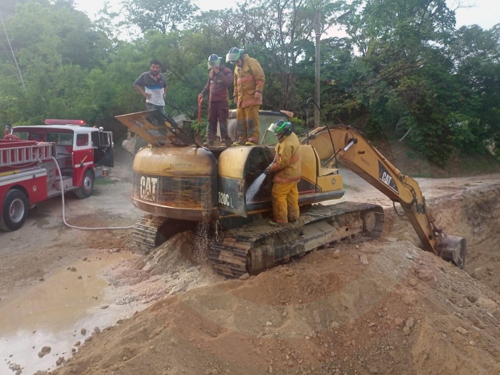 Fue alrededor de las 16:00 horas, cuando elementos del Heroico Cuerpo de Bomberos recibieron el reporte de que en la calle principal de la colonia en mención se estaba incendiado una máquina, la cual estaba realizando trabajos de excavación en la zona donde se va a construir una barda de contención.