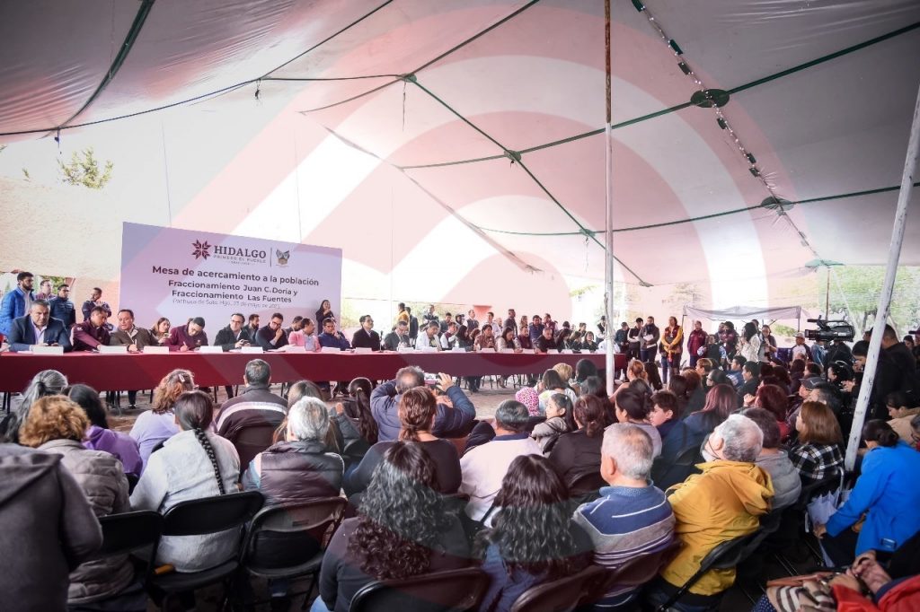 Pachuca, Hgo.- Al encabezar la mesa de acercamiento a la población de los fraccionamientos Juan C. Doria y Las Fuentes, el secretario de Gobierno, Guillermo Olivares Reyna, señaló: “Ustedes eligieron a Julio Menchaca Salazar, hoy llega con la autoridad moral que ustedes le depositaron, él no se debe a ningún funcionario público ni a ningún empresario, él se debe al pueblo, se debe a ustedes, y por eso llegó a ser gobernador del estado, no tiene más compromiso que con la población”.