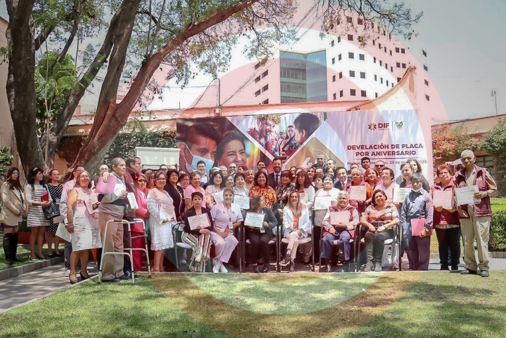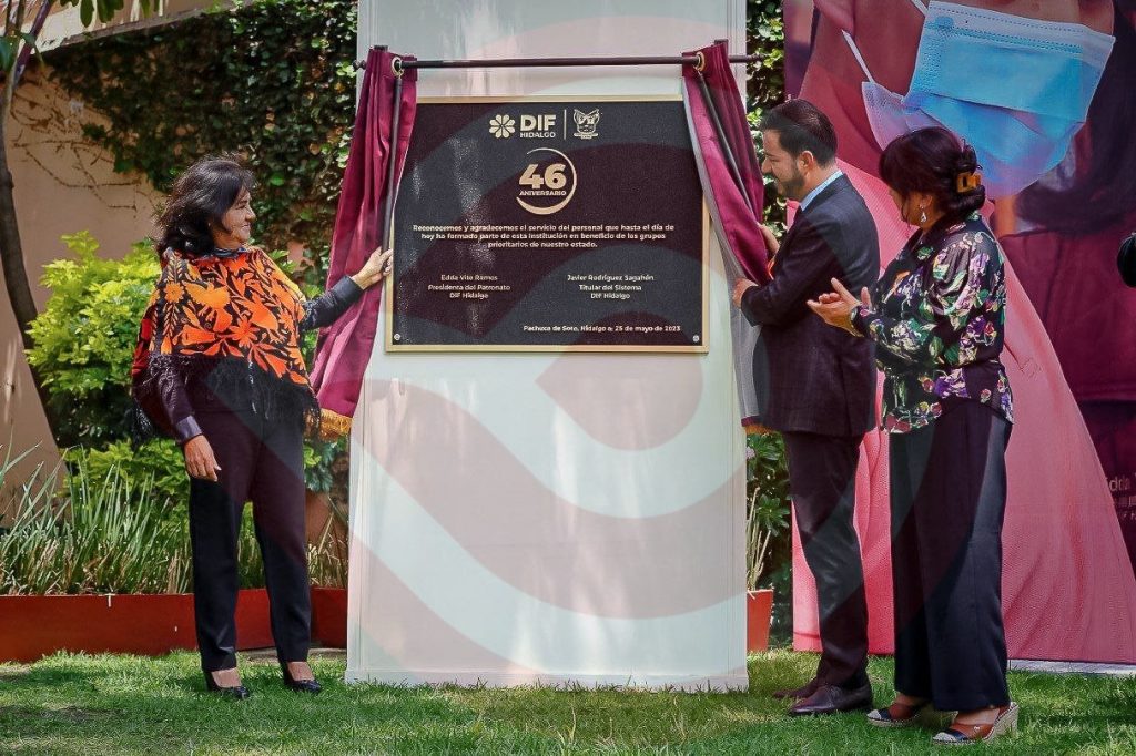 Posteriormente, Edda Vite Ramos y Javier Rodríguez develaron la placa conmemorativa al 46 aniversario de la creación del Sistema, misma que rinde homenaje al largo camino recorrido desde 1977, en conjunto con la Junta General de Asistencia, la Casa Cuna, la Procuraduría de Protección a Niñas, Niños, Adolescentes y Familia; el Hospital del Niño DIF, las Casas de la Niña y del Niño, los Centros de Asistencia Social, la Casa de la Tercera Edad; y, recientemente, el Albergue Migrante para Niñez y Adolescencia Acompañada y no Acompañada.
