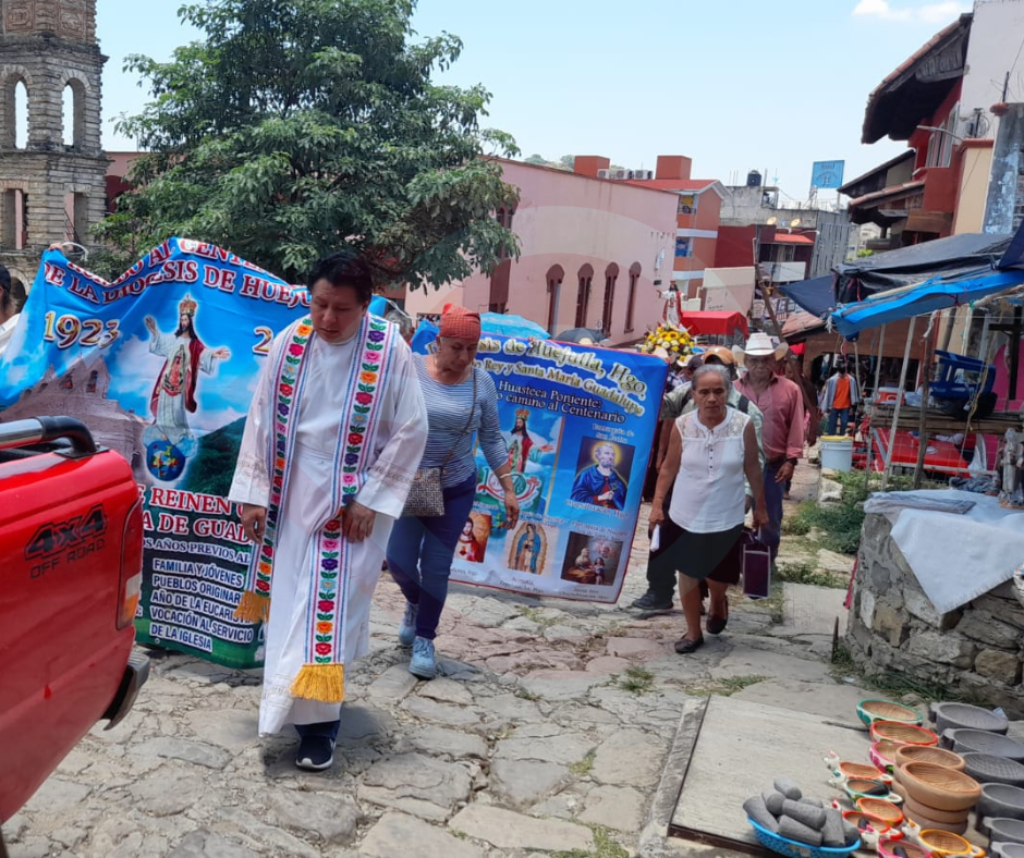 La Procesión de los fieles católicos fue recibida por el Párroco del Sagrario Catedral en Huejutla, para posteriormente participar en la concelebración eucarística correspondiente.
