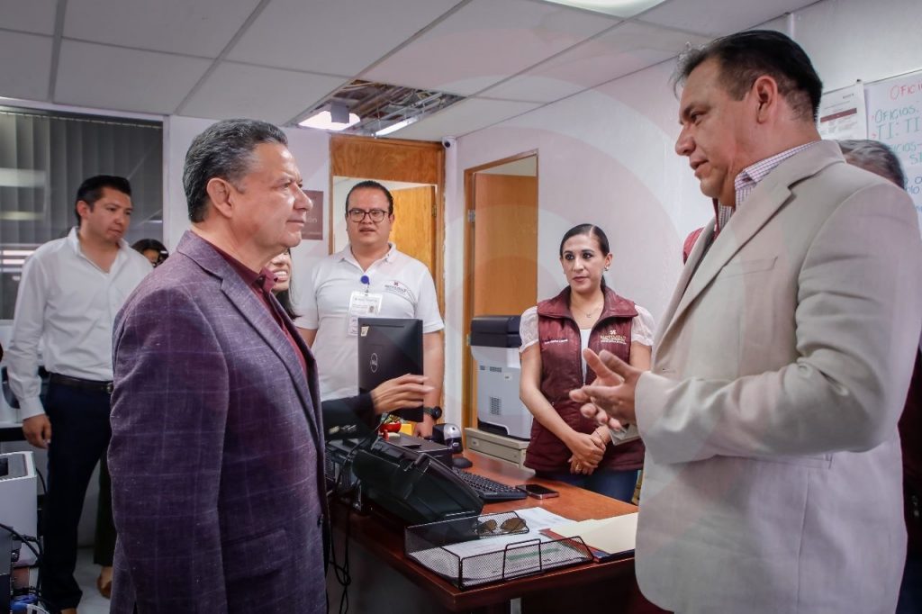 Pachuca, Hgo.- Durante una visita sorpresa por las instalaciones del Sistema de Transporte Convencional de Hidalgo, el mandatario estatal, Julio Menchaca Salazar, supervisó la atención que se le brinda a los concesionarios, así como las condiciones en las que se encuentran laborando las y los trabajadores de esta dependencia.