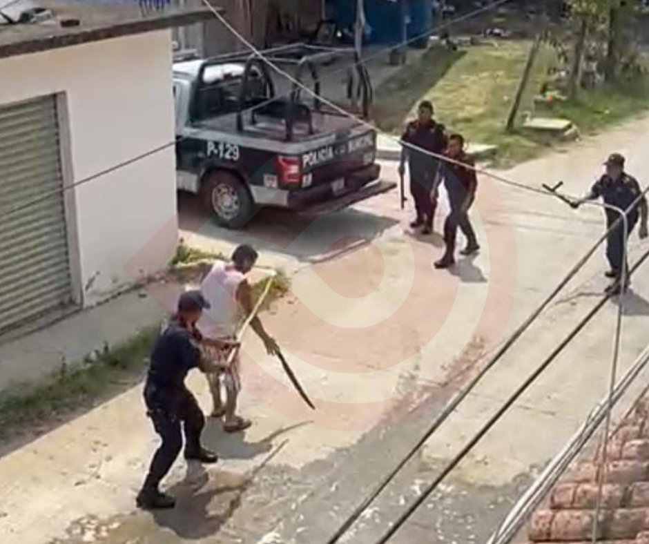 Huejutla, Hgo.- Un hombre, quien con machete en mano amenazaba a transeúntes y que posteriormente intentó atacar a policías municipales, fue desarmado y sometido por los uniformados preventivos.