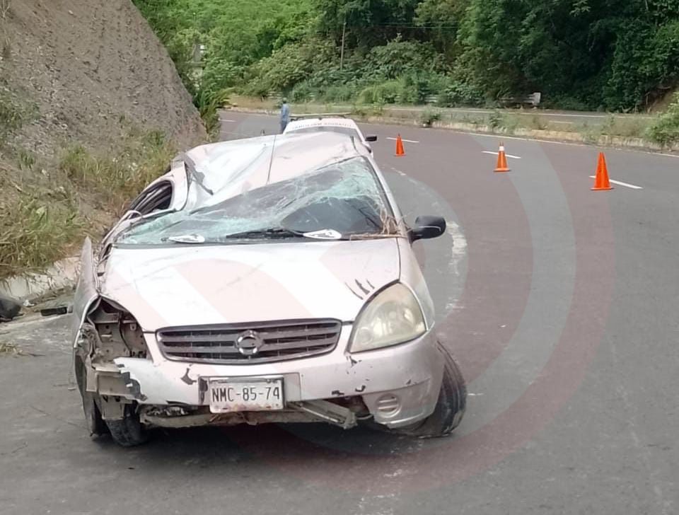 La unidad motora que presuntamente circulaba a exceso de velocidad se salió de la cinta asfáltica, chocó con un cerro y volcó hasta quedar con las llantas hacia arriba, pero milagrosamente el conductor resultó ileso.