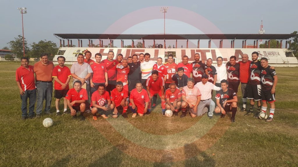 Huejutla, Hgo.- El equipo de fútbol de docentes de la Escuela Superior de Huejutla de la Universidad Autónoma del Estado de Hidalgo (UAEH) se enfrentó en juego amistoso con catedráticos de la Preparatoria 2 de la UAEH de Tulancingo, Hidalgo.