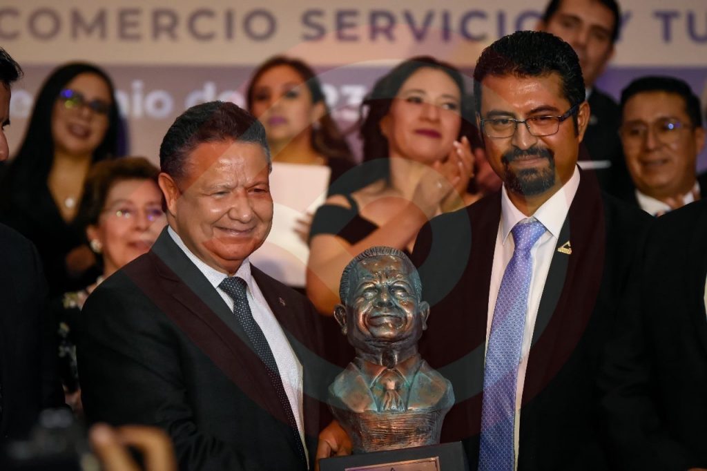 En este encuentro, el gobernador Menchaca Salazar recibió el galardón “Dios del Comercio”, por su destacado trabajo en la promoción económica de Pachuca e Hidalgo.