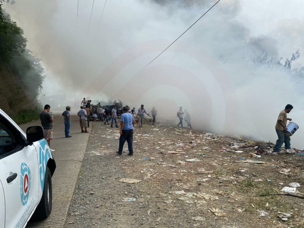 Fue la tarde del pasado viernes cuando reportaron que el basurero de Mecatlán estaba ardiendo, por lo que de manera inmediata se trasladaron sobre la vía estatal Mecatlán-Calnali, en donde se ubica el tiradero, para llegar la ardua labor y controlar las llamas.