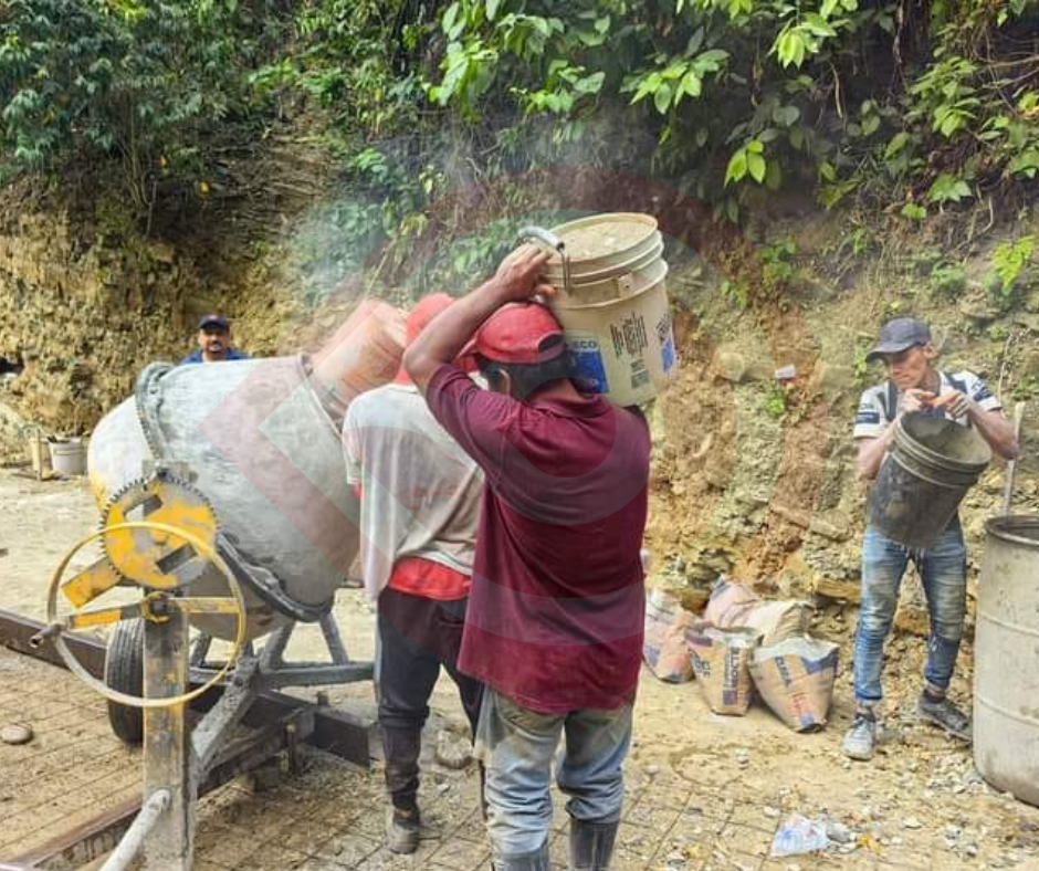 Apoyado con personal de la dirección de Obras Públicas, el presidente municipal verificó la calidad y cantidad de materiales que se emplean en esta importante obra, la cual fue solicitada por los propios vecinos y autoridades de Tecopia en base a sus necesidades.
