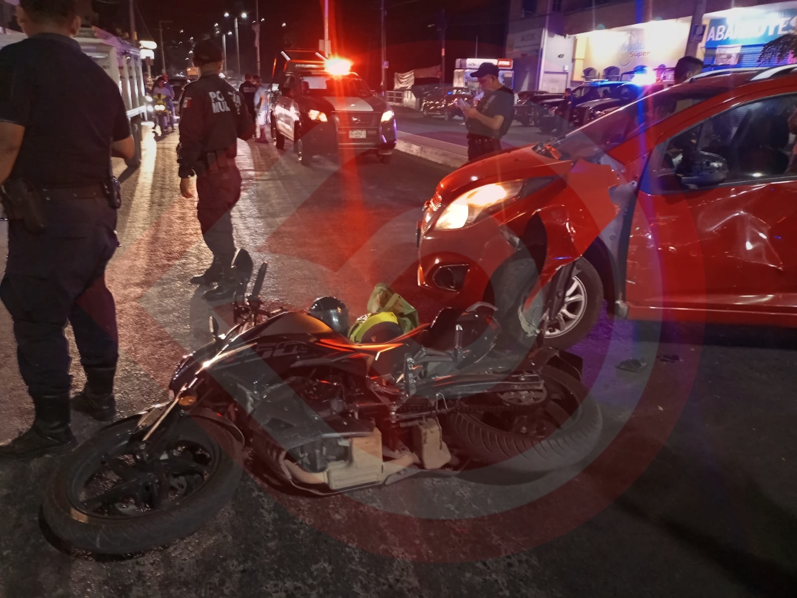 En el sitio, un vehículo de la marca Chevrolet tipo Spark de color rojo, con placas de circulación XSR-753-B del estado de Tamaulipas, que era conducido por una dama, impactó a una motocicleta de color negra, al momento de querer darse la vuelta en “U”.