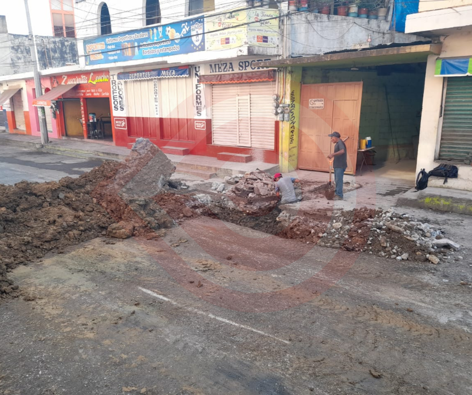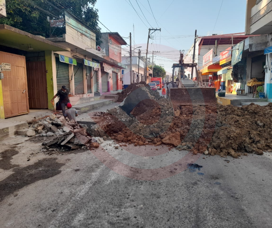 Huejutla, Hgo.- Aprovechando que este martes no se estableció por tercera semana consecutiva el comercio semifijo en las calles aledañas al mercado central, personal adscrito a la dependencia de Obras Públicas Municipal o de una empresa particular, inició labores de introducción de tuberías en un trecho de la avenida México.