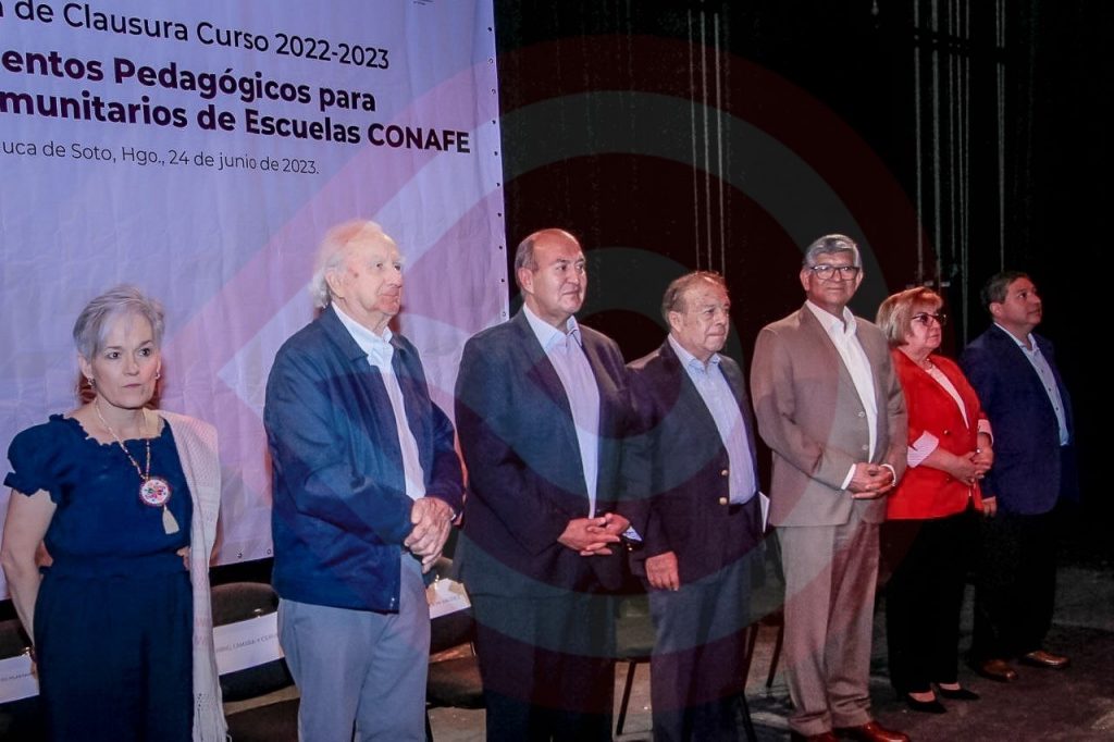 Pachuca de Soto, Hgo.- El secretario de Educación Pública de Hidalgo, Natividad Castrejón Valdez, junto con el director general del Consejo Nacional de Fomento Educativo, Gabriel Cámara y Cervera, y el coordinador territorial del CONAFE en Hidalgo, Joel Guerrero Juárez, clausuraron este fin de semana el curso denominado “Fundamentos Pedagógicos para Educadores Comunitarios de Escuelas CONAFE”.