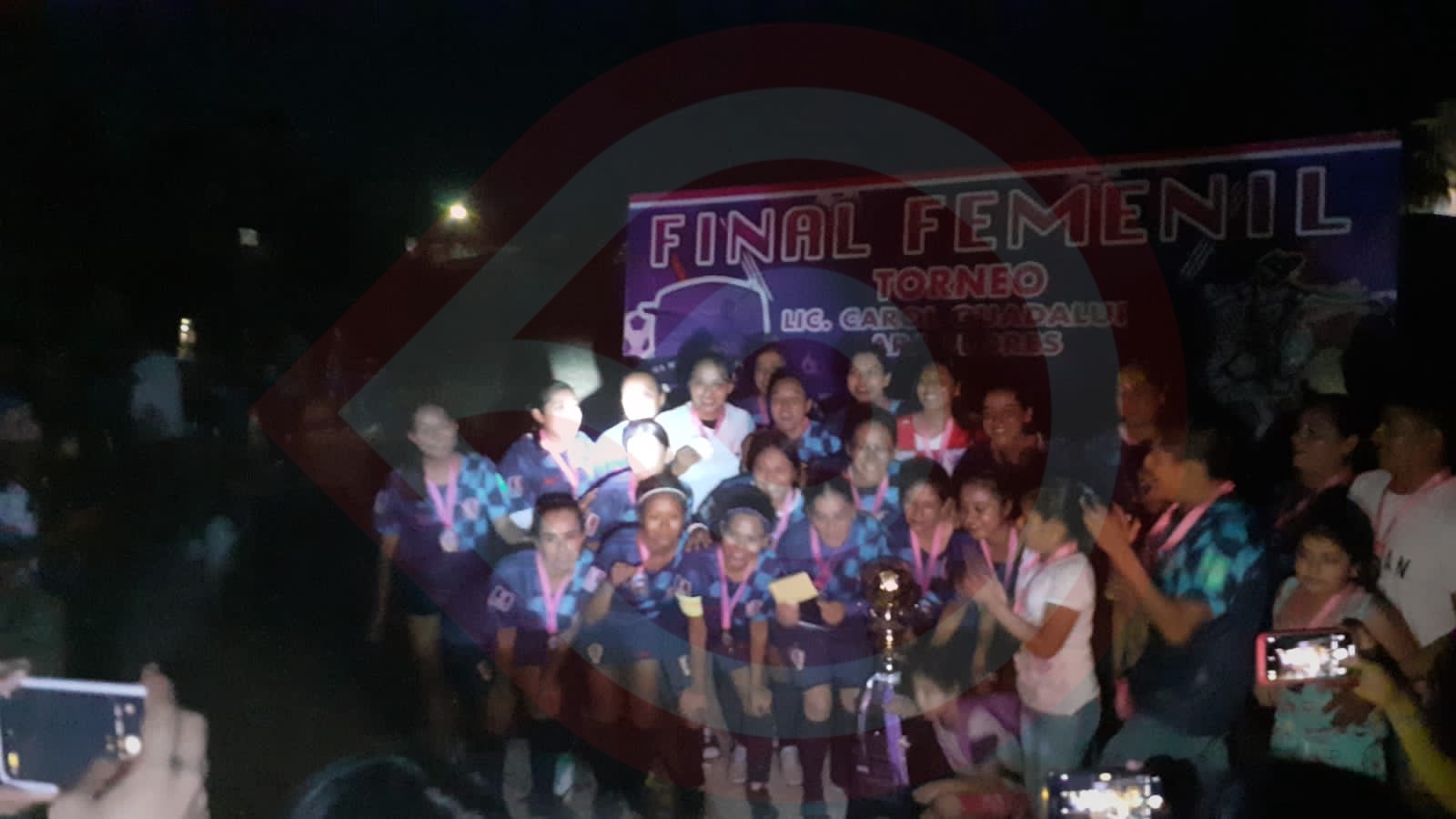 En primer lugar los invitados entregaron el trofeo al campeón del torneo de consolación el equipo Felinas de Chalahuiyapa quien venció 3 – 0 al Deportivo Tepetate.