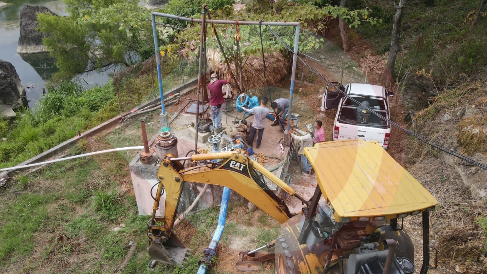 Este jueves desde temprana hora personal de la Comisión de Agua Potable Alcantarillado y Saneamiento de Huautla (CAASH), llevó a cabo los trabajos de la instalación de la bomba de agua, para poder suministrar el servicio a la población, quienes hace meses se encuentra sin abasto del vital líquido.