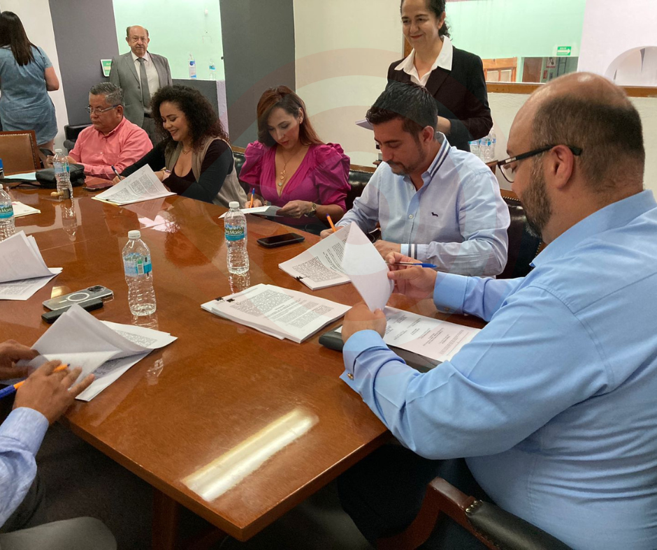 Daniel Andrade Zurutuza, presidente municipal, en compañía de Karla Isabel Enríquez Bravo y Martha Margery Rivera Núñez, sindico Hacendario y sindico Jurídico, respectivamente; además de Rosalino Barragán Monterrubio, tesorero municipal y Said Vargas Castelán, secretario general, participó en la firma del convenio que permitirá al municipio contar con dicho recurso que se ejecutará en el ejercicio fiscal de este año 2023.