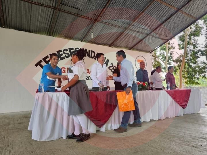 Bautista Gutiérrez expresó su felicitación y reconocimiento a los maestros de la Telesecundaria 283, muy particularmente al profesor Donaciano Villegas, director del plantel, quien dirige atinada y responsablemente a la plantilla docente y administrativa, cuyo trabajo y dedicación se refleja en la calificación de los alumnos.
