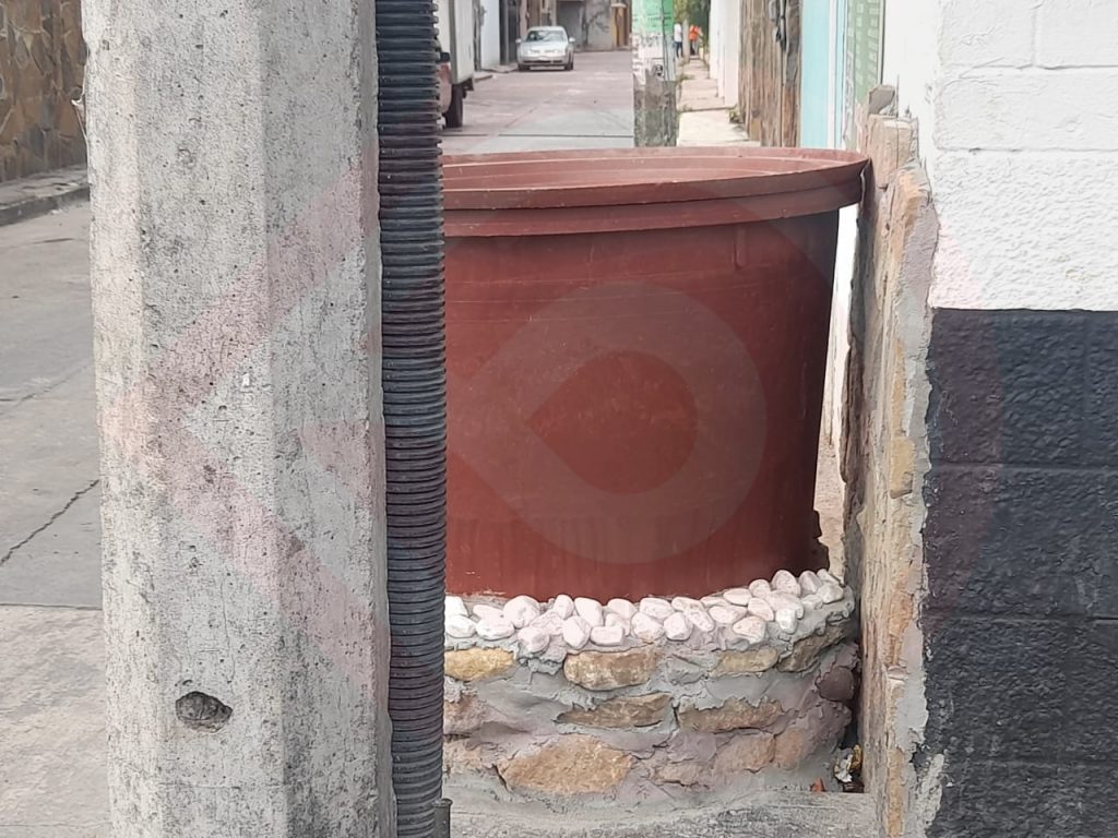 A pregunta formulada, subrayaron que por ningún motivo un paso peatonal, en este caso banqueta, debe de bloquearse completamente, ya que el depósito, que cubre toda la acera, esta empotrado en el piso con una base de cemento y piedra.