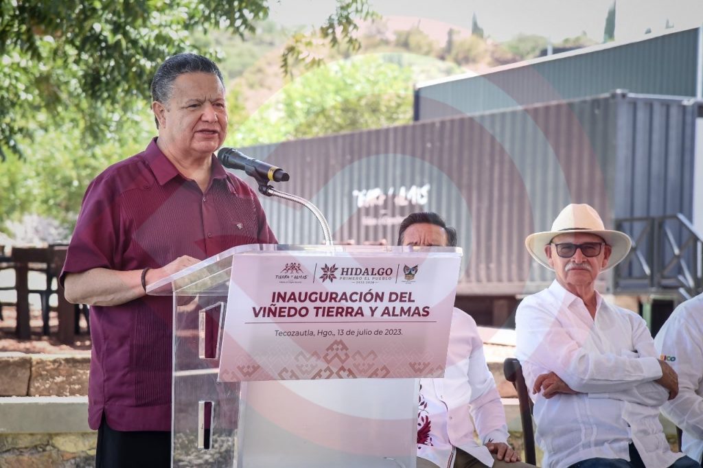 Tecozautla, Hgo.- El gobernador Julio Menchaca Salazar y el secretario de Turismo del Gobierno de México, Miguel Torruco Marqués, encabezaron la inauguración del viñedo “Tierra y Almas”, espacio en el que el mandatario hidalguense enfatizó que la administración estatal es una aliada de las y los inversionistas que buscan generar bienestar y desarrollo.