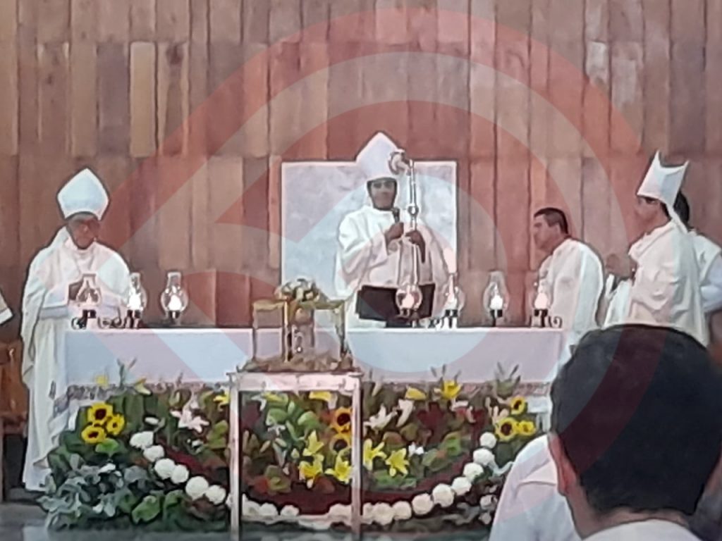 La Concelebración Eucarística fue oficiada por los Obispos de Tula, Juan Pedro Meléndez; de Tulancingo, Domingo Díaz Martínez y de Huejutla de Reyes, José Hirais Acosta Beltrán; quienes de manera conjunta hicieron un llamado a fortalecer la unidad en la Iglesia viva.