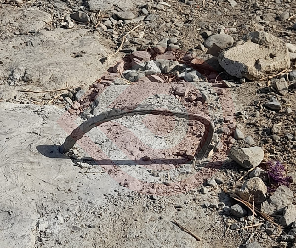 Esta varilla enterrada y doblada en forma de aro, fue colocada por un conocido comerciante ambulante que expende normalmente en la calle del área de acceso principal a la Catedral, al parecer para poder amarrar los lazos de la lona de su puesto.