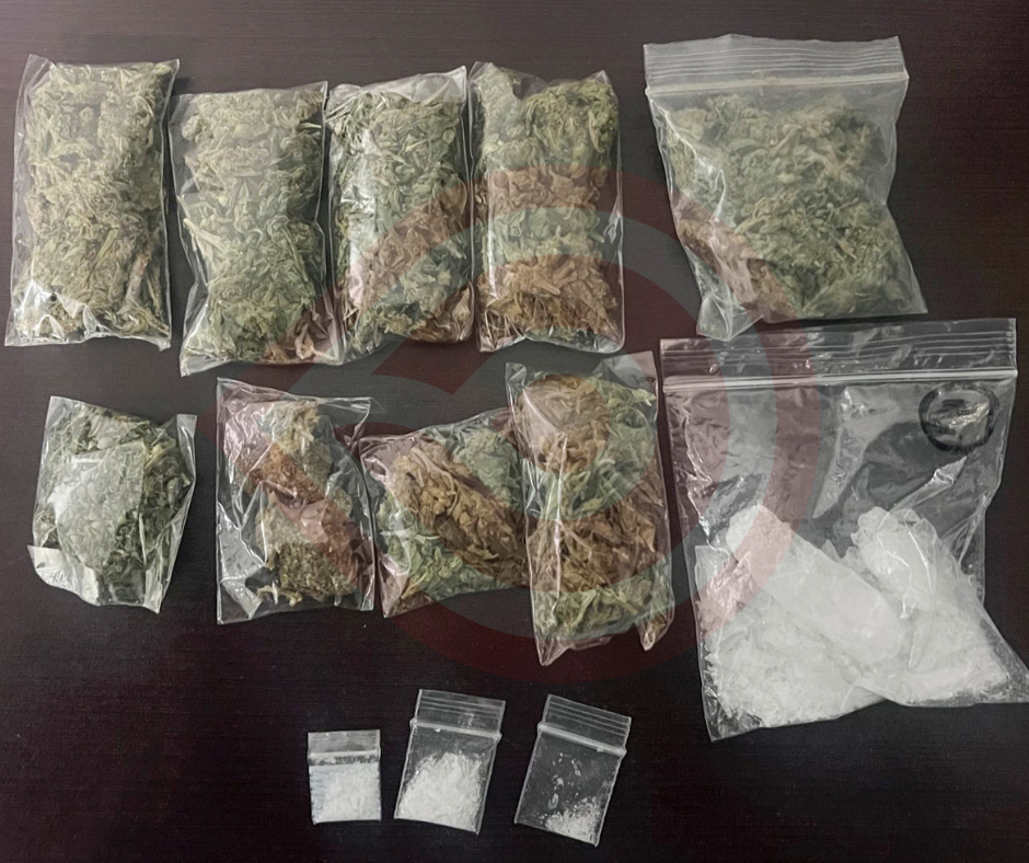 La persona, quien se identificó como A. M. T., de 29 años, tenía en posesión envoltorios con 21 gramos de sustancia granulada con las características de droga sintética (cristal), 40 gramos de hierba seca con características propias de la marihuana y un gramo de polvo blanco similar a la cocaína.