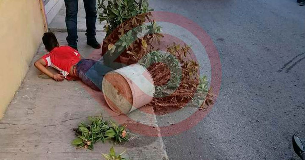 motora de dos ruedas bajo los efectos de las bebidas embriagantes, derrapó y terminó cayendo entre varias macetas de cactus sobre la calle Constitución, vecinos del lugar solicitaron la intervención de los servicios de emergencia ya que quedó inconsciente.