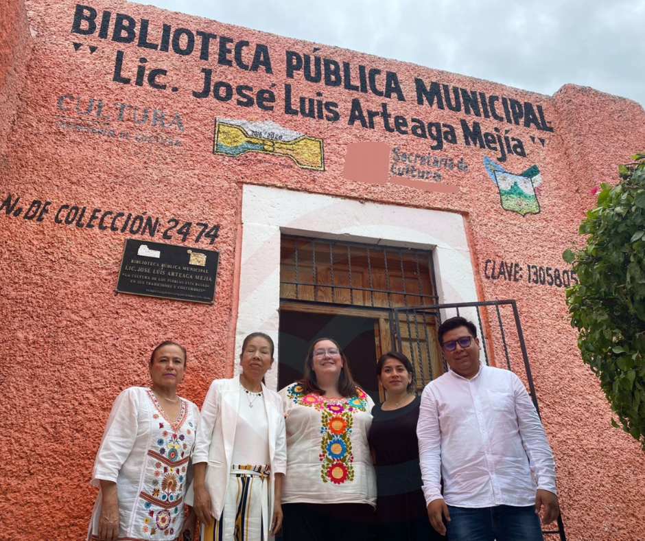 Durante la gira de trabajo por el Valle del Mezquital también acudió a la Biblioteca Pública Municipal José Vasconcelos, ubicada en San Agustín Tlaxiaca, donde destacó en el trabajo que realizan las bibliotecarias Nicolasa Carrasco Vera, Oralia Cruz Tapia, Anahide Ordaz Jiménez y Yenny Hernández con la población adulta mayor.