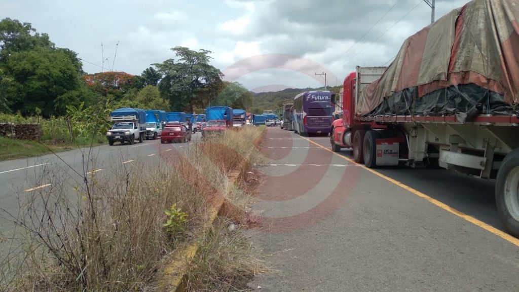Huejutla, Hgo.- Habitantes y autoridades de la comunidad de Xiquila, como parte de las acciones de protesta que llevan a cabo por las pésimas condiciones de su carretera, bloquearon la vía federal México-Tampico en el entronque de esa población, para que se les cumpla con la rehabilitación.