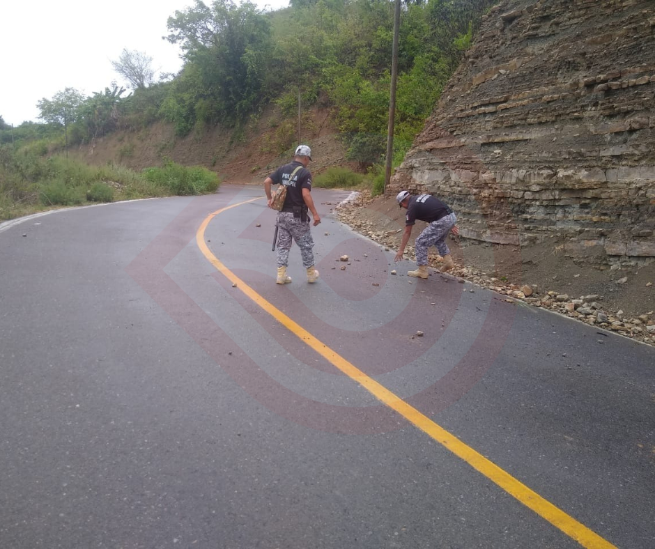 Lo anterior con el propósito de llevar a cabo el retiro de tierra y rocas que se hallaban sobre la cinta asfáltica, derivado de las lluvias registradas en la región que provocaron pequeños derrumbes en algunas zonas.