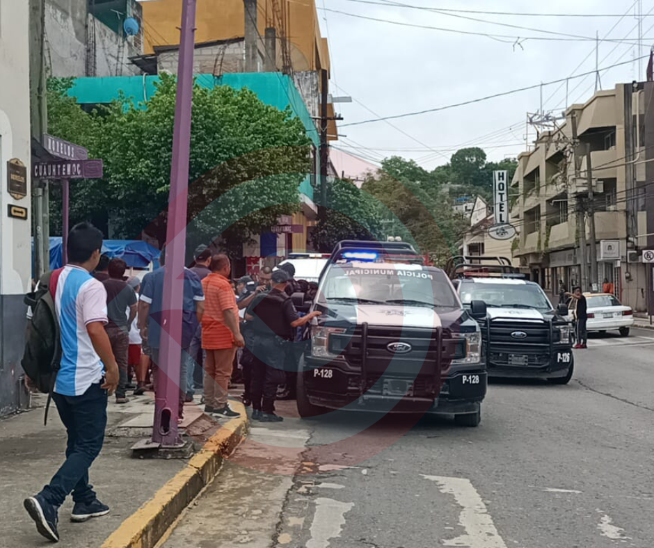 Al lugar de los hechos arribaron varias unidades de la Dirección de Seguridad Pública y Tránsito Municipal (DSPyTM), quienes bloquearon el acceso de la Morelos para hacerle frente a la multitud.