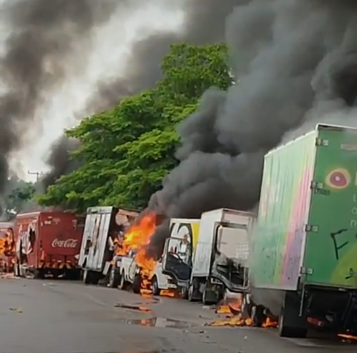 Incendian 25 carros en bloqueo de FDOMEZ y por asesinato de comisariado