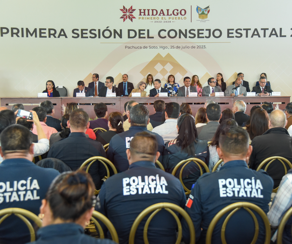 Pachuca de Soto, Hgo.- Con el firme propósito de recuperar la paz y la seguridad de Hidalgo, el gobernador, Julio Menchaca, presidió la primera sesión del Consejo Estatal de Seguridad Pública, ocasión en la que se dio a conocer que este organismo autorizó un acuerdo de colaboración con la Secretaría de Educación Pública de Hidalgo (SEPH) a fin de garantizar la capacitación de las y los policías hidalguenses.