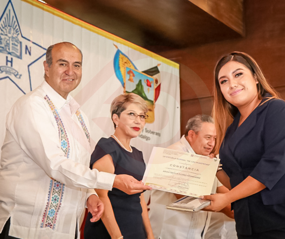 Presiden autoridades educativas, la ceremonia de graduación de la Escuela Normal de las Huastecas