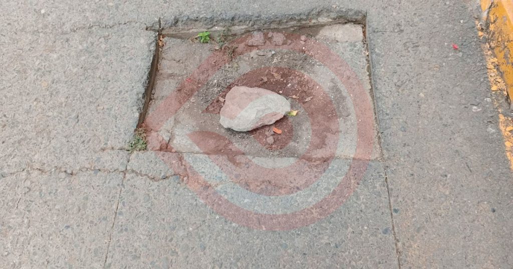 Un conductor que se identificó con el nombre de Cristóbal Gómez, comentó que es cierto que la oquedad no está en el centro de la calle y generalmente se puede evitar, pero en ocasiones hay vehículos aparcados en el acotamiento opuesto y obliga a que para pasar hay que caer en la oquedad, por lo que alguien le colocó una piedra en el interior con intenciones de nivelación.