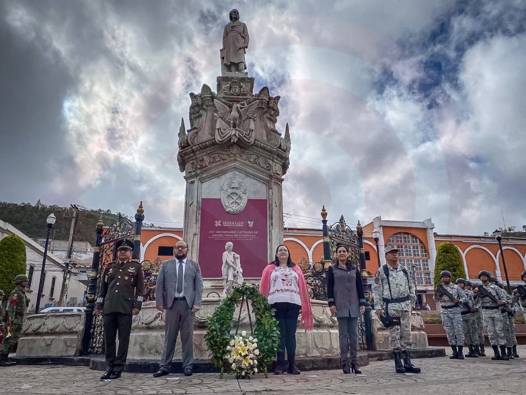 Pachuca de Soto, Hgo.- Esta mañana, el Gobierno del Estado de Hidalgo, a través de la Secretaría de Cultura, acompañado por elementos de la Guardia Nacional y de la 18va Zona Militar, conmemoró el 212°Aniversario Luctuoso de Miguel Hidalgo y Costilla en el monumento ubicado en plaza Constitución de la capital hidalguense. Previo al depósito de laurel y la Guardia de Honor, la titular de Cultura en el estado Tania Meza Escorza destacó en su mensaje que a 212 años de la muerte de Miguel Hidalgo y Costilla, “su mayor ejemplo es la lucha por la independencia de México, y su mayor enseñanza es la frase que rigió su vida: El pueblo que quiera ser libre, lo será”.