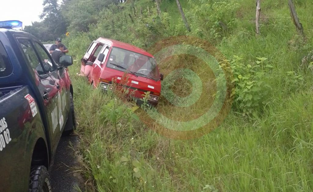 Molango, Hgo.- Conductor de una unidad motora, al no extremar sus precauciones, sufrió una aparatosa salida de camino, al lugar de los hechos acudieron elementos policíacos para auxiliar a las dos personas que viajaban de esa combi.