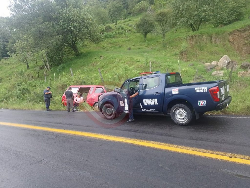 Mencionaron que el accidente fue sobre la vía federal México – Tampico, cerca de Molango y se trató de una Nissan, tipo Ichiban, color rojo, pero por el mal tiempo de la sierra sufrieron una salida de camino y en donde una dama solo sufrió lesiones menores.