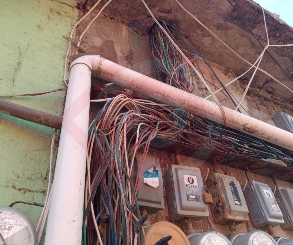 Así mismo, comentaron, muestra del peligro de una quemazón en que nos encontramos, se observa en la zona de medidores de luz, ubicada en un costado de la avenida Constituyentes; en donde hay al aire libre un mazacote de cables, añadidos unos y sin duda pelados otros, que al mojarse y están próximas las lluvias, podrían ocasionar -advirtieron-, cortos circuitos, como los que ya ha habido en ese mismo sector.