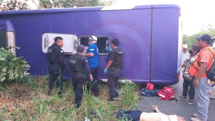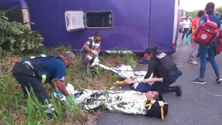 Tepetzintla, Ver.- Dos personas fallecidas y 30 lesionadas, fue el saldo de la volcadura de un autobús Futura procedente de la Ciudad de México con destino a Huejutla, Hidalgo.