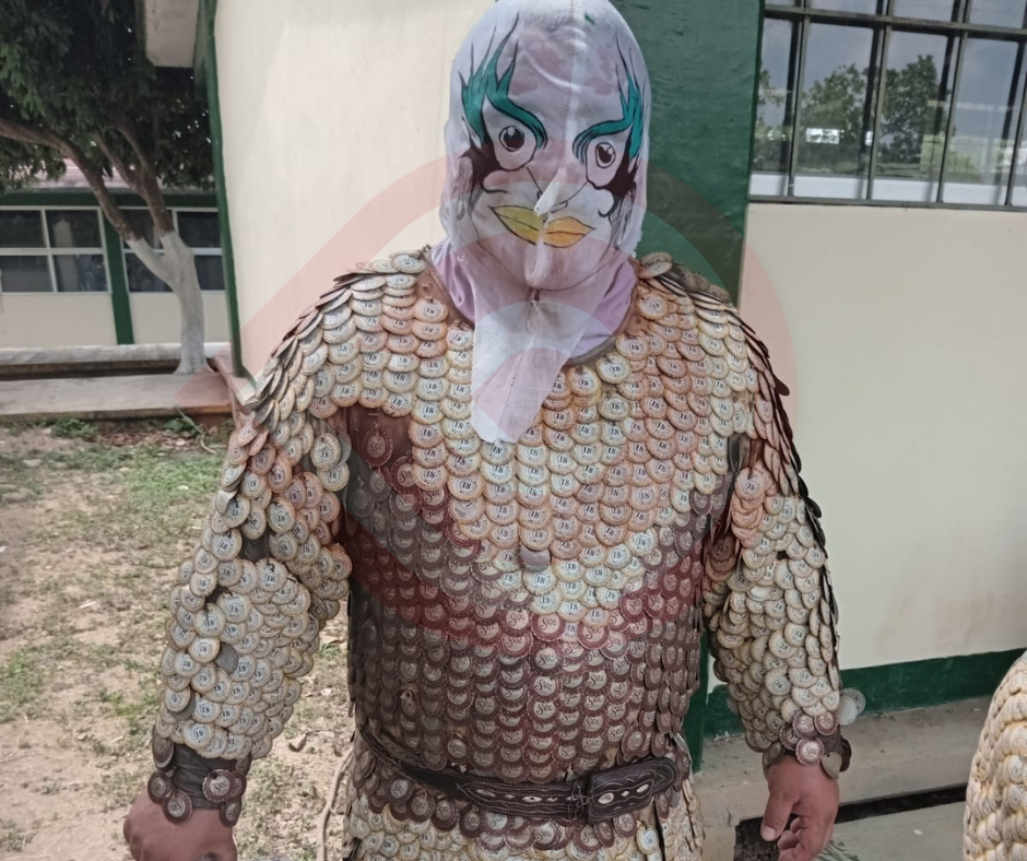 Para finalizar, Huerta Meza comentó que los trajes que utilizan los capitanes son de color vino, y rojos los que los siguen, usan cascabeles en los tobillos y penachos en la cabeza, pero el de los comanches es de manta, y lo singular, es que les colocan fichas con cierta elegancia, las cuales representan el dinero, la tentación, por lo que dicho vestuario llega a pesar más de 30 kilos.