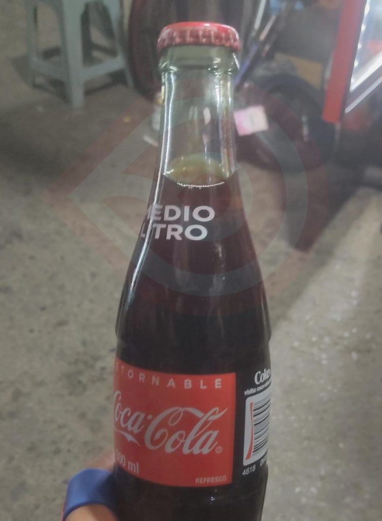 De acuerdo con lo informado por el ciudadano, indicó que acudió a una tienda ubicada en la zona Centro de esta cabecera municipal, y al tomar un refresco de envase de vidrio se percató que la corcholata se movía, a diferencia de las demás que vienen completamente selladas, además de que la etiqueta era de plástico, en contraste de las otras que son rotuladas.