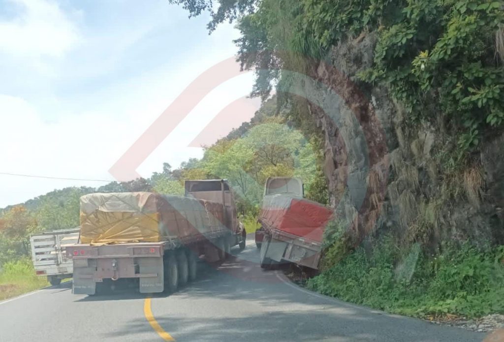 La pesada unidad que transportaba varias toneladas de material para construcción, se accidentó entre Casetas y El Cantil, a la altura del kilómetro 155.