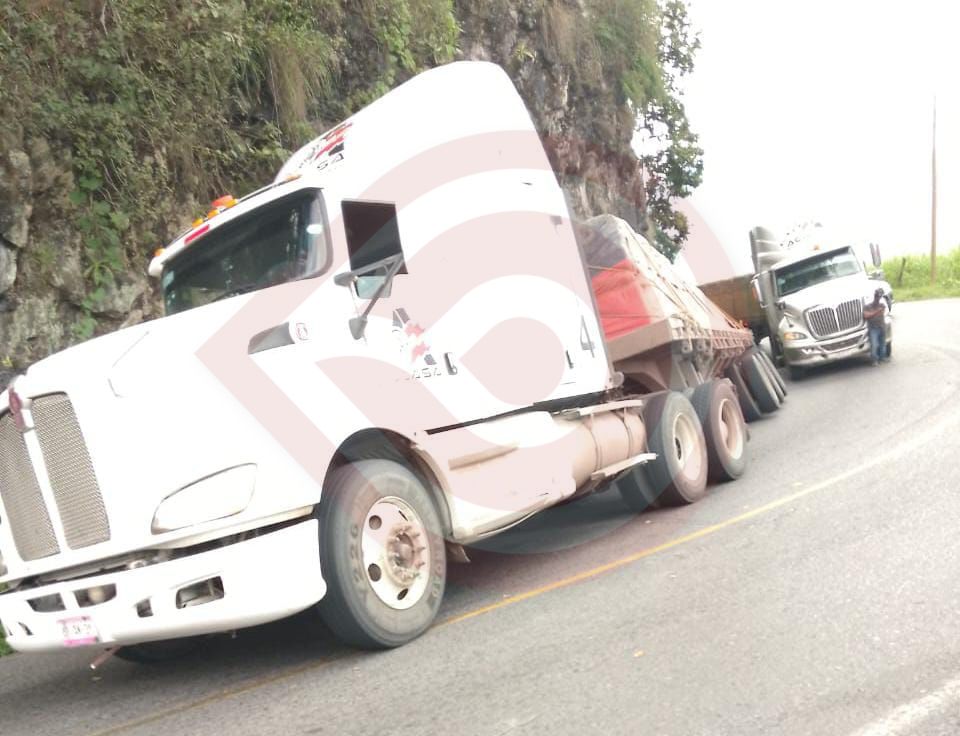 Tlanchinol, Hgo.- Un tráiler que circulaba sobre la carretera federal México -Tampico, estuvo a punto de volcar en la sierra hidalguense, la tarde de este viernes.