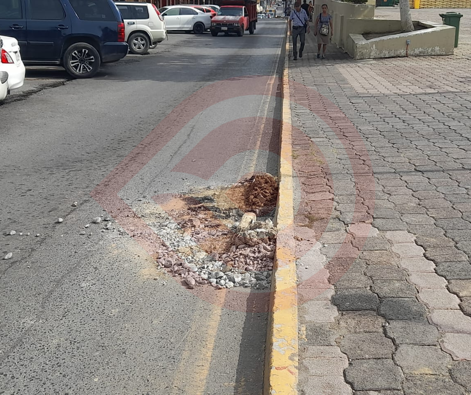 Explicaron que, desde la altura del ayuntamiento hasta el reloj municipal, han cavado a intervalos, una serie de hoyos, los cuales no tienen señalamiento más que la tierra extraída de los mismos; por lo que se debe manejar con precaución para evitar un posible accidente.
