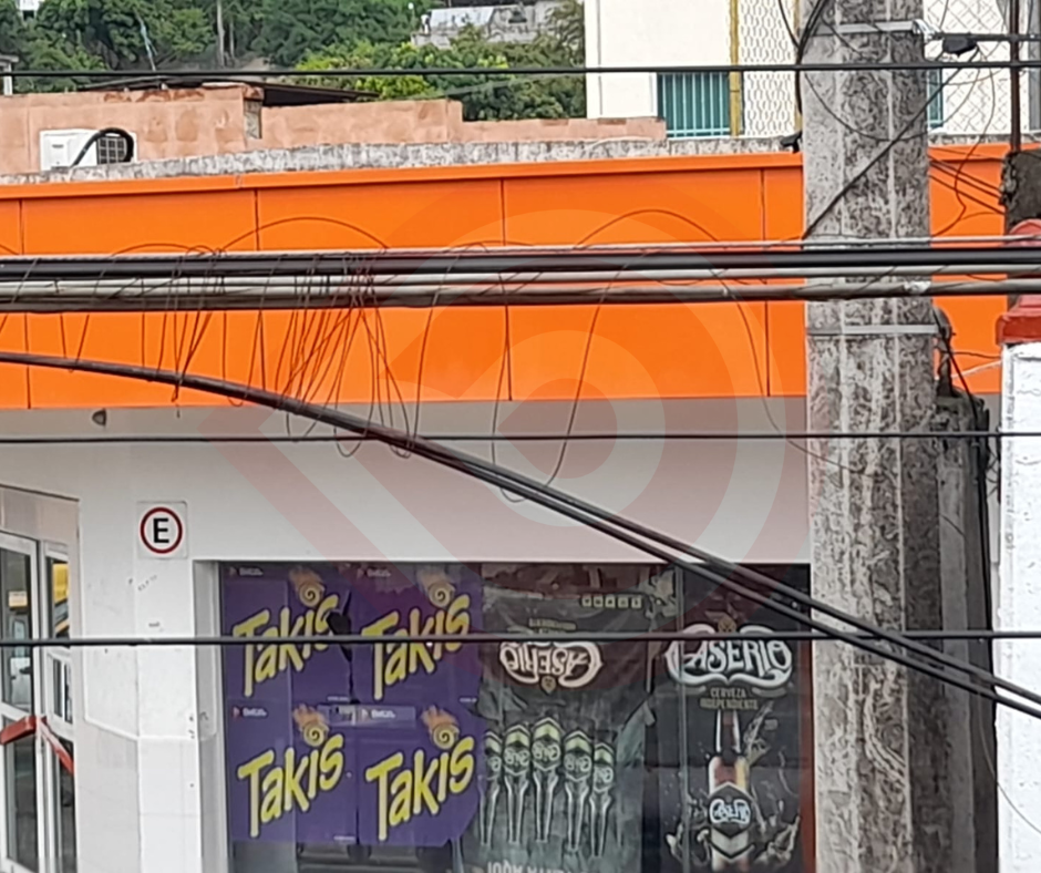 Cables de la CFE colgando en calle Campeche